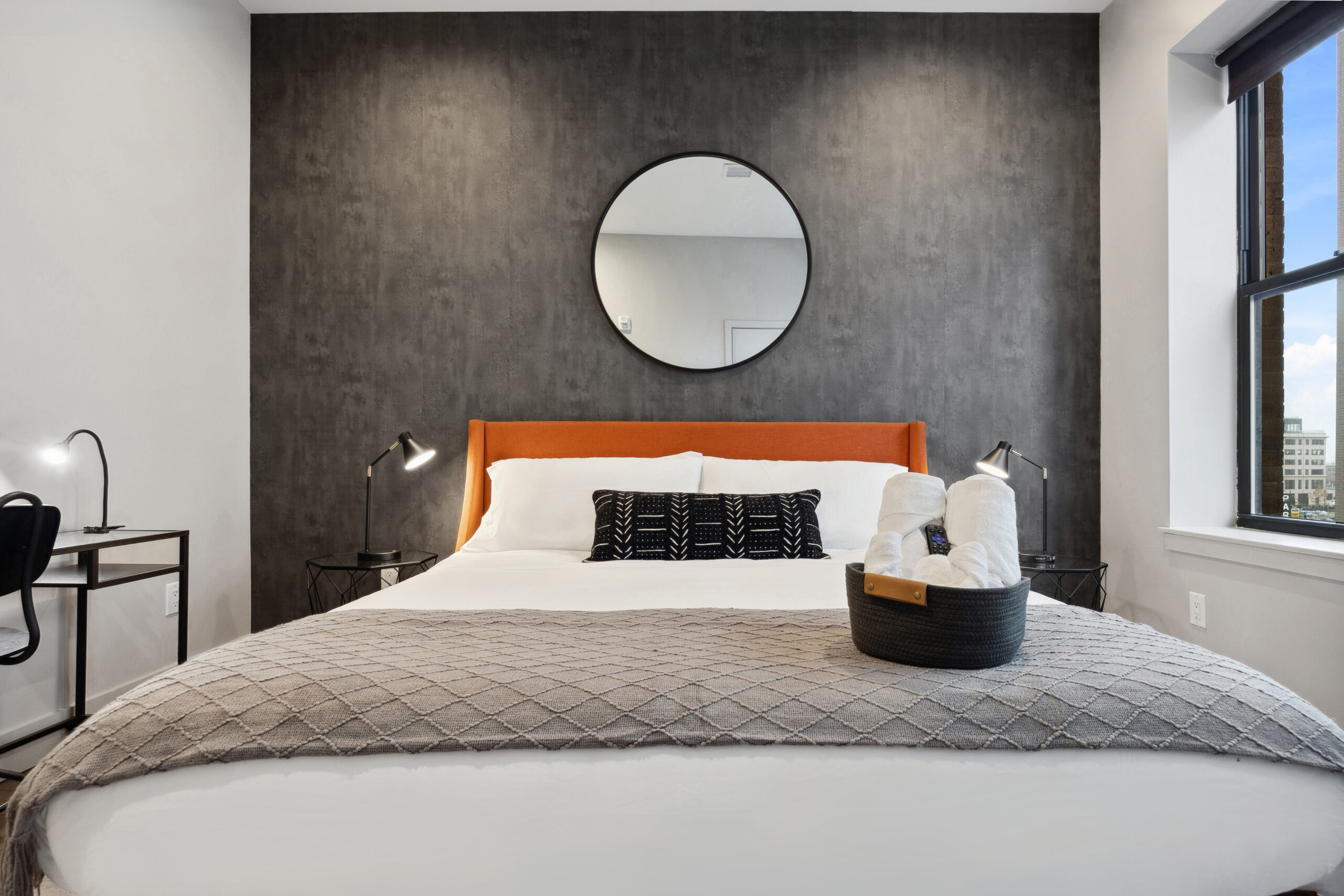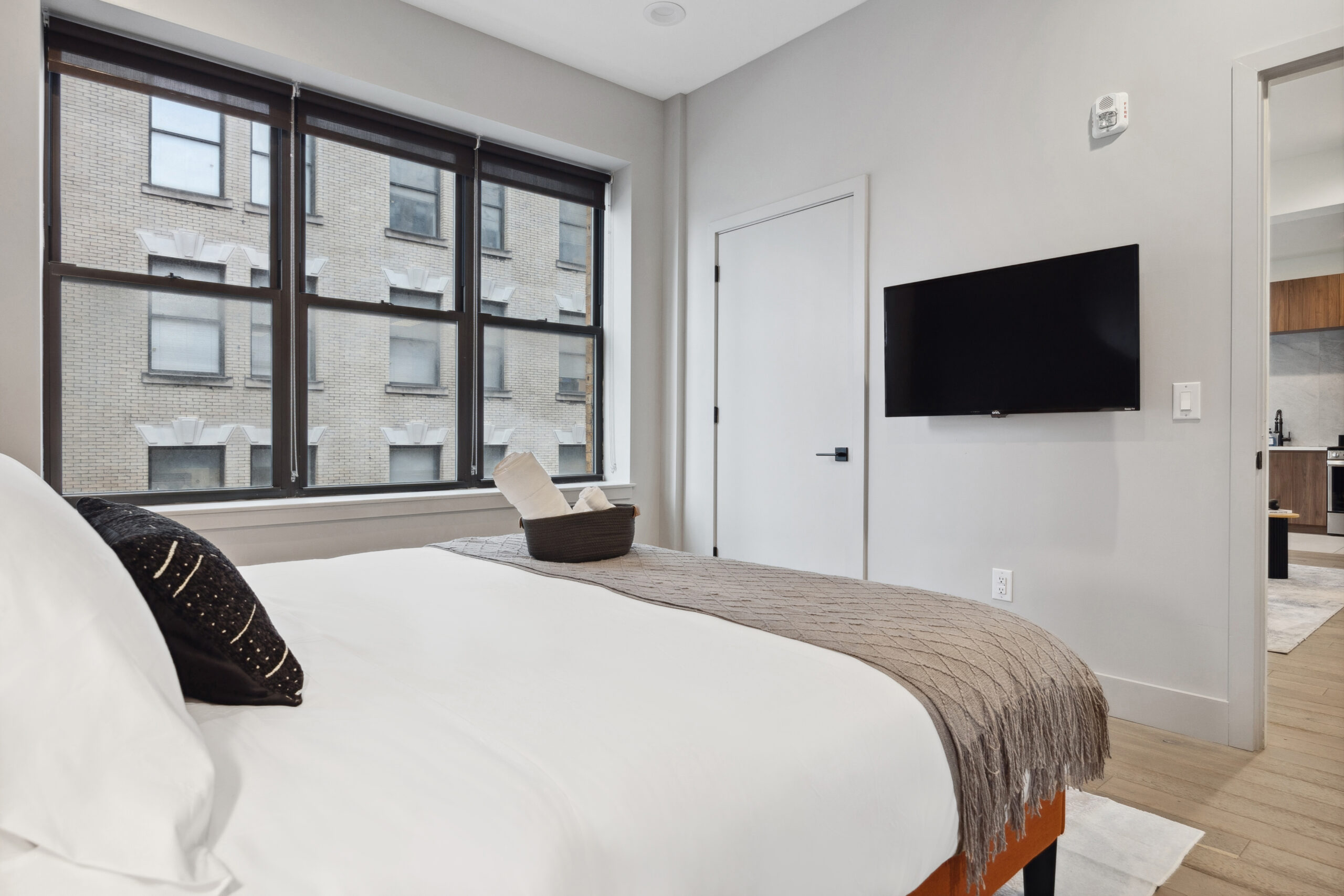 ✅ Two Smart TVs – living room & bedroom ✅ High Speed Fios Wifi ✅ Fully stocked coffee essentials ✅ In-unit washer & dryer (detergent provided) ✅ Gym ✅ Rooftop ✅ Central AC/Heat